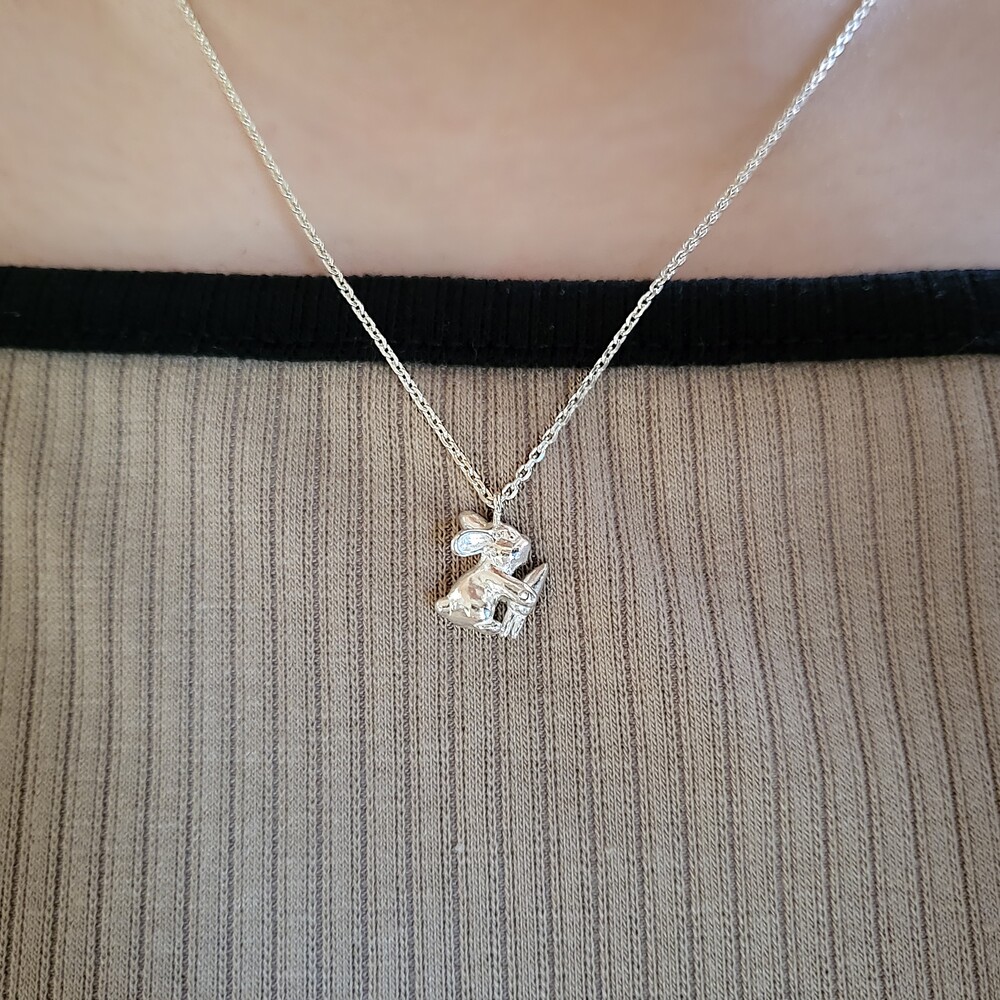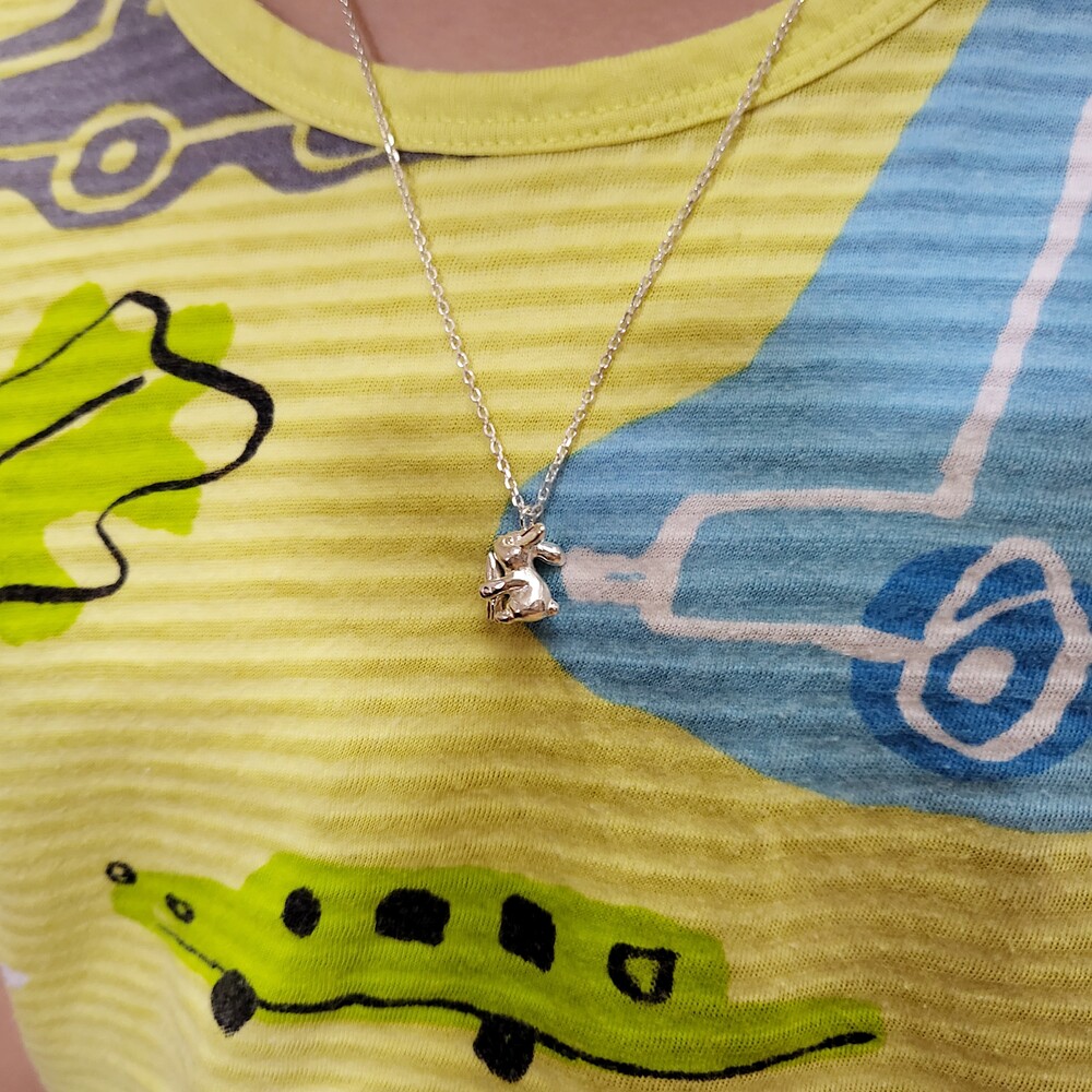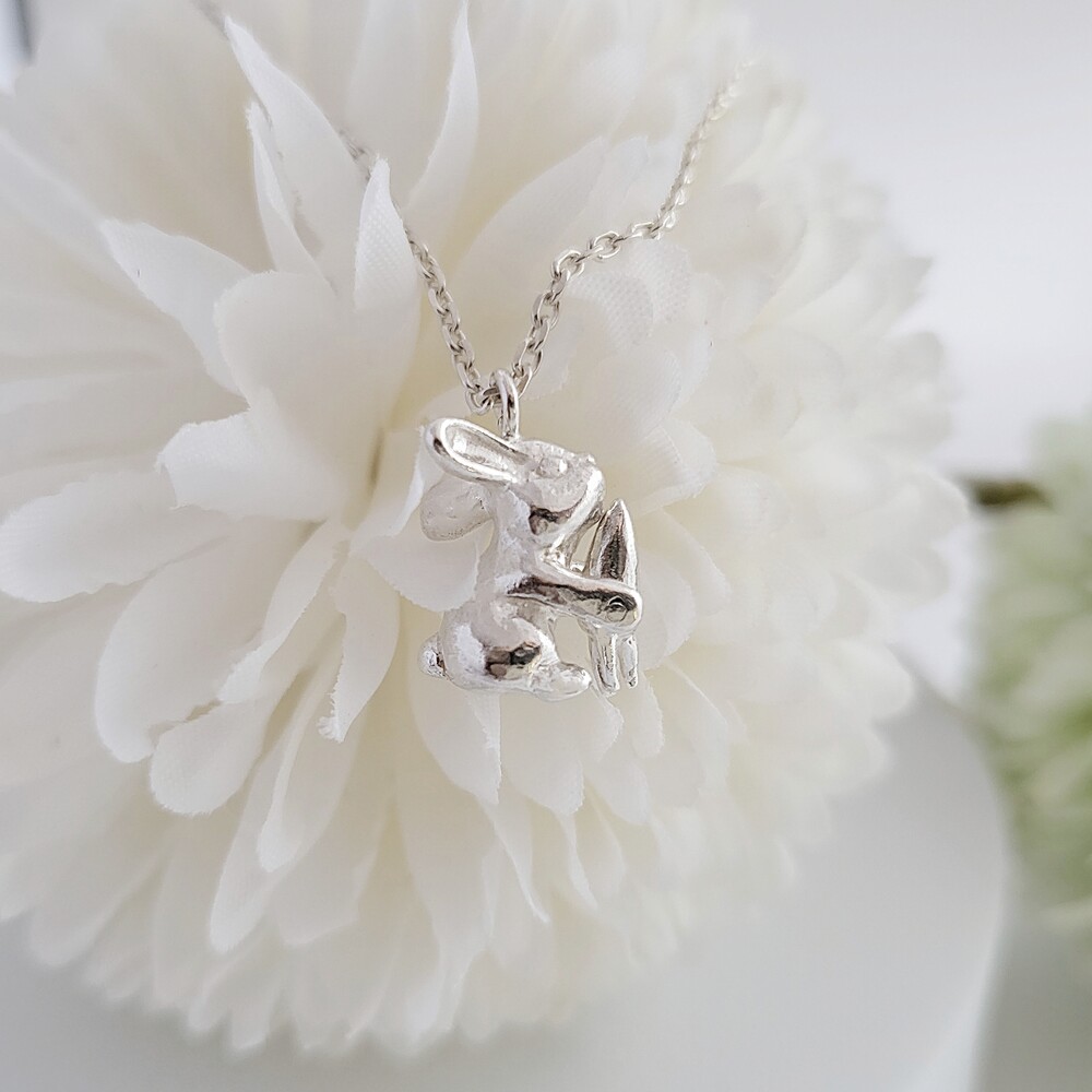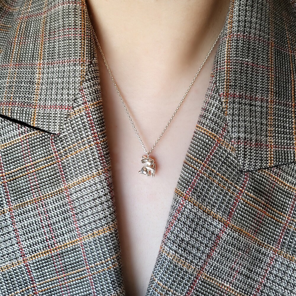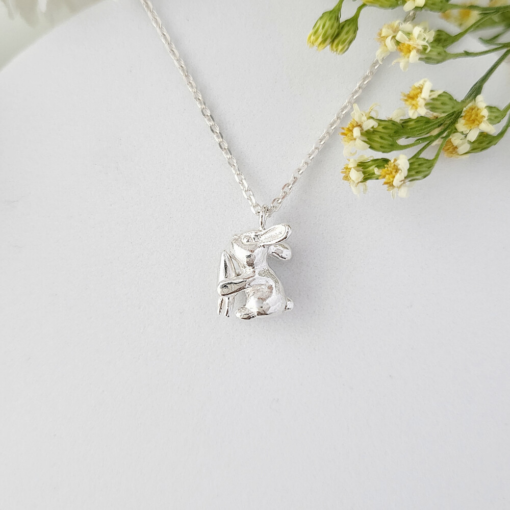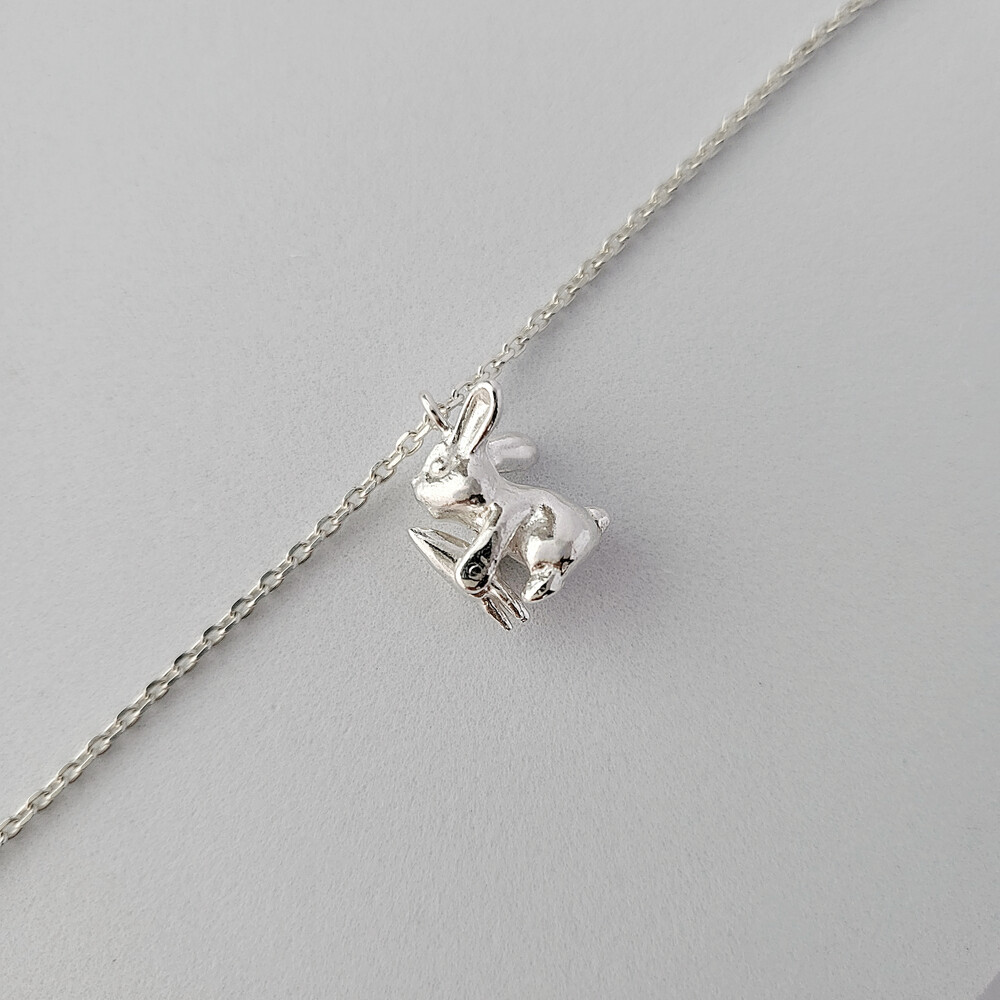 Anytime, Anywhere with oflune's Jewelry - 자신의 몸집만 한 커다란 당근을 먹고 있는 귀여운 토끼 - 오브룬 스튜디오의 시그니처인 애니멀 주얼리 시리즈로 귀여운 토끼가 엄청 커다란 당근을 먹고 있는 듯한 모습을 표현하였으며, 리벳 기법을 사용하여 토끼가 당근을 먹고 있는 움직임을 앙증맞고 고급스럽게 표현하였습니다. - Measurement (mm) - 토끼 : 10W * 12L - 체인 길이 : 42cm / 43cm / 44cm / 45cm(옵션 선택) Material : Silver 925