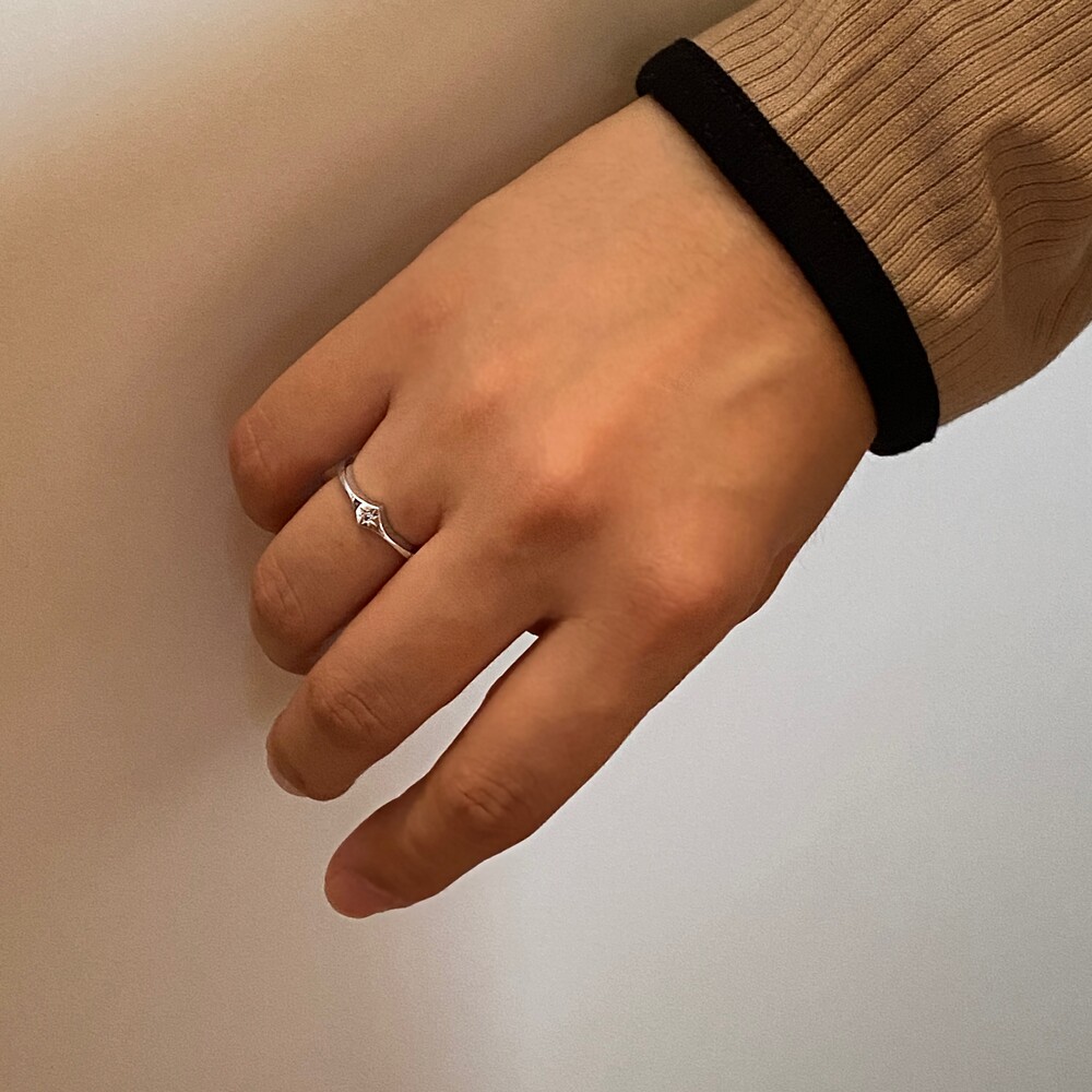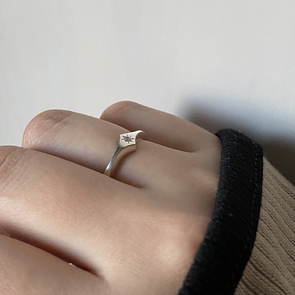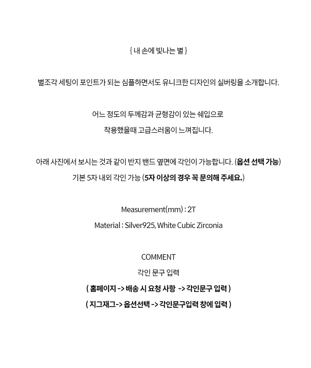 별조각 세팅이 포인트가 되는 심플하면서도 유니크한 디자인의 실버링을 소개합니다.