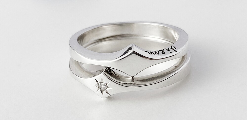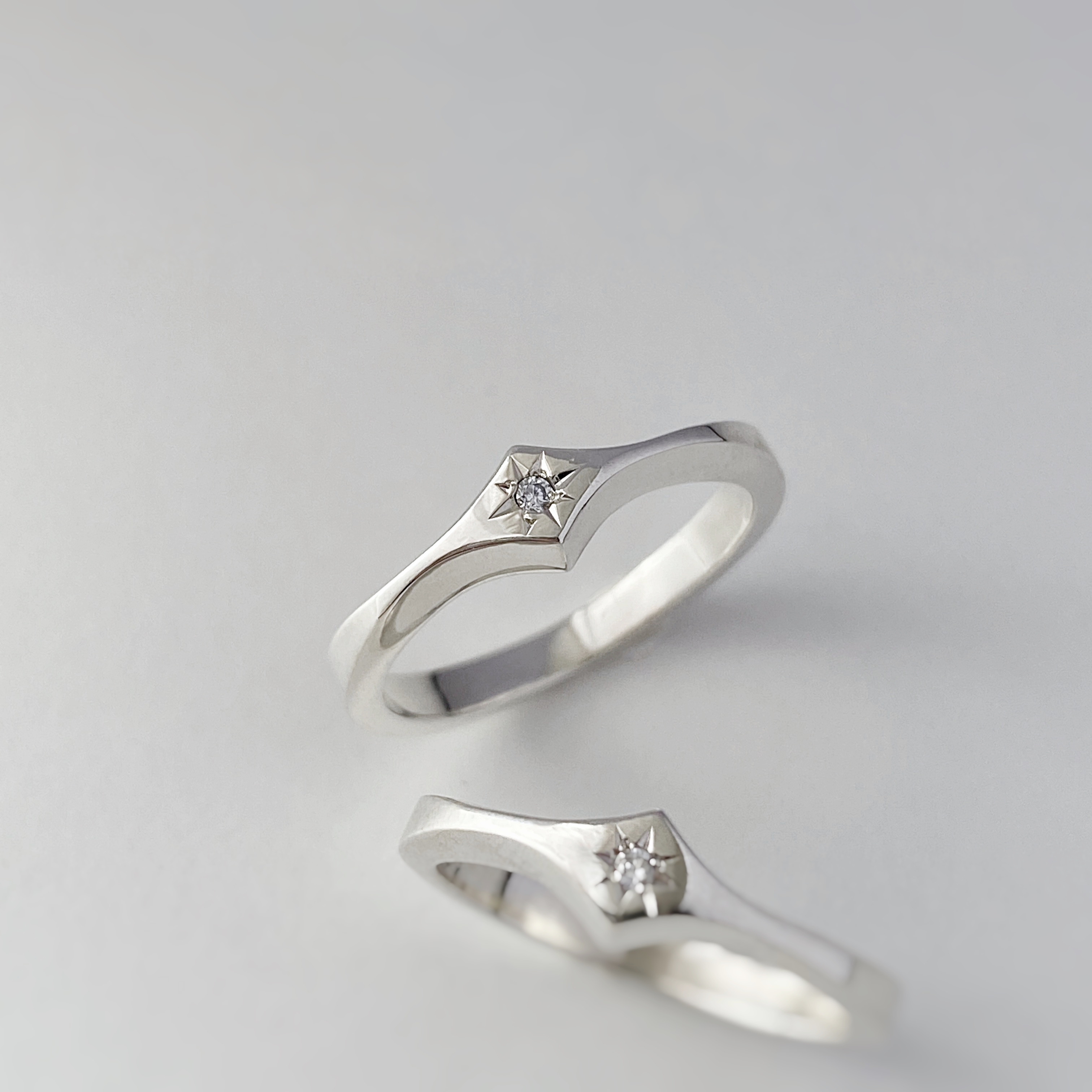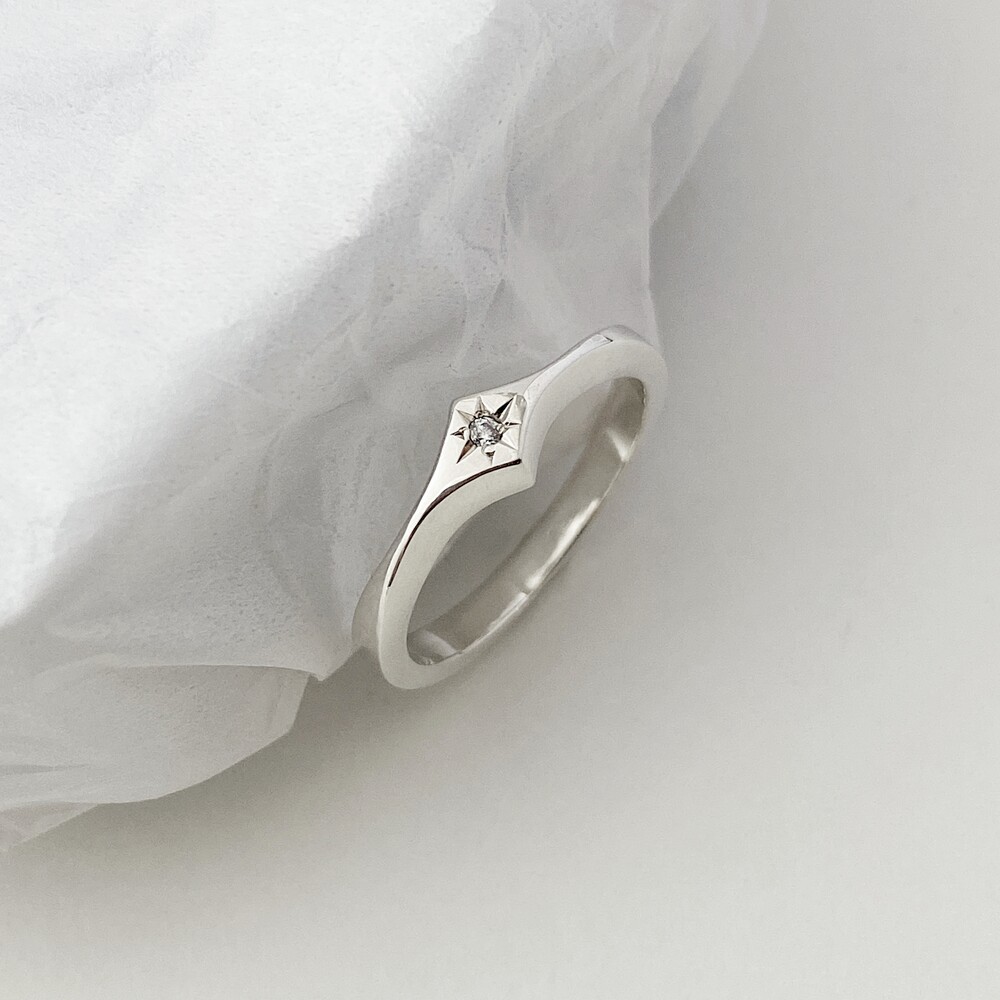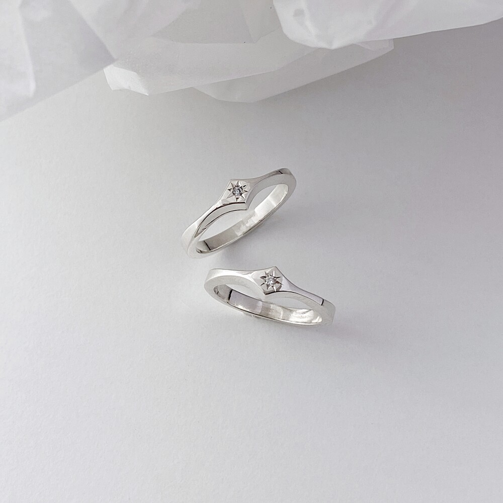 별조각 세팅이 포인트가 되는 심플하면서도 유니크한 디자인의 실버링을 소개합니다.