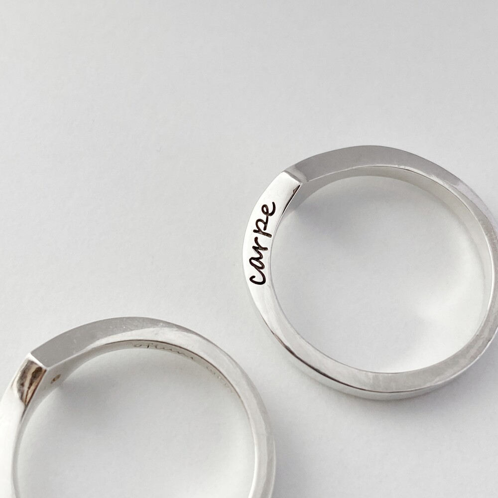 아래 사진에서 보시는 것과 같이 반지 밴드 옆면에 각인이 가능합니다. (옵션 선택 가능)