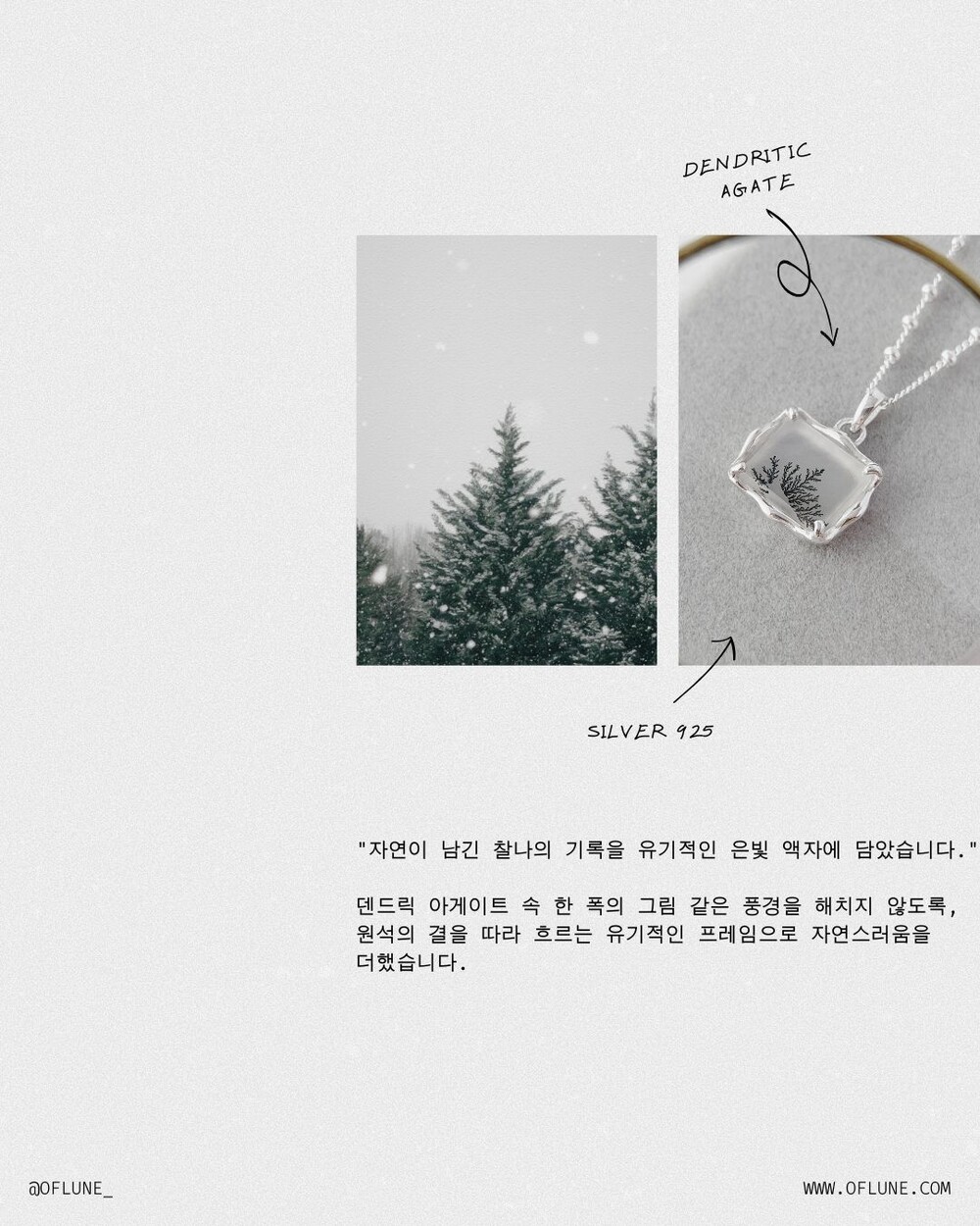 본연의 결을 따라 흐르는 유기적인 실버 프레임으로 세상에 단 하나뿐인 고요한 풍경을 완성했습니다.