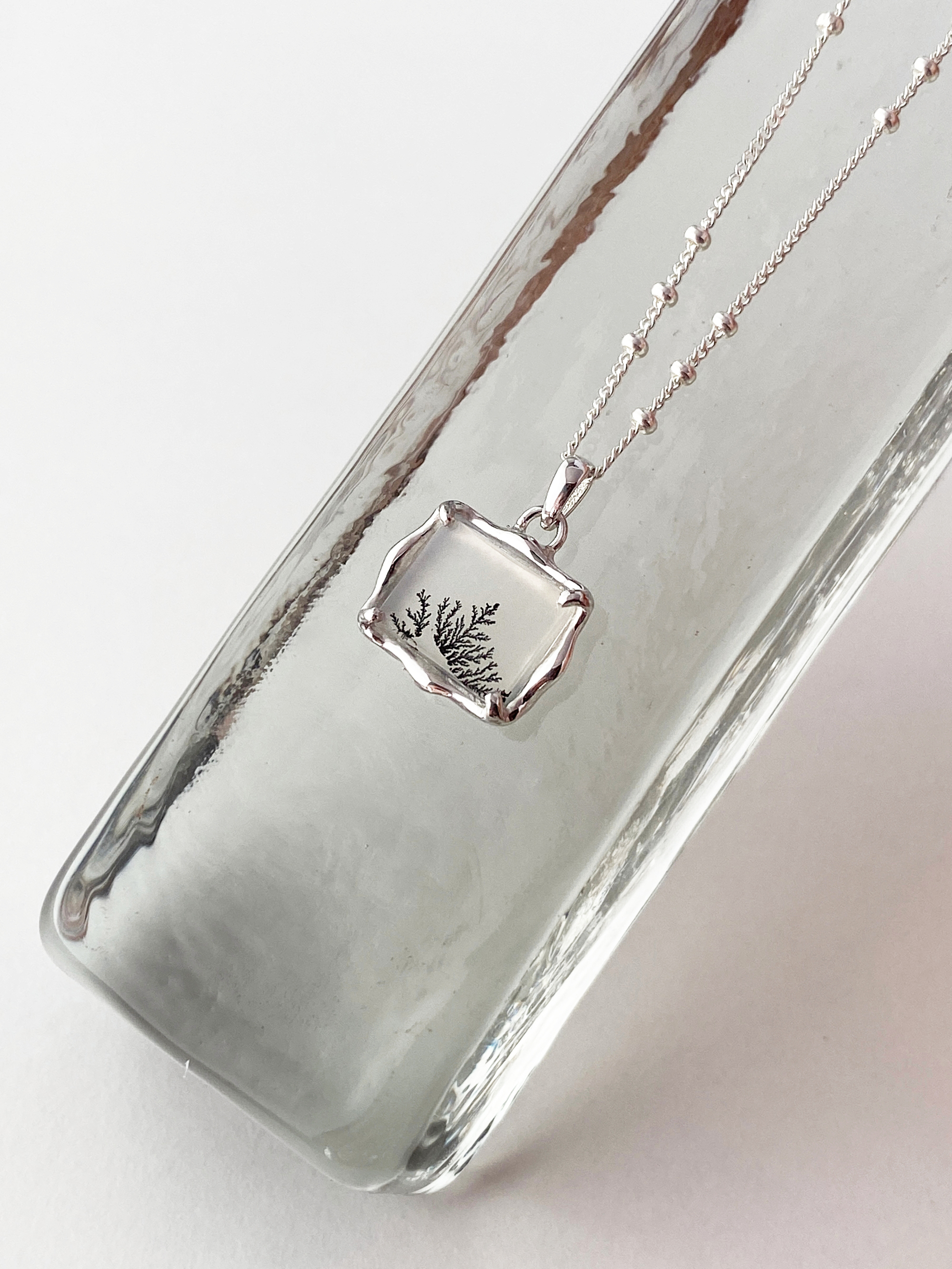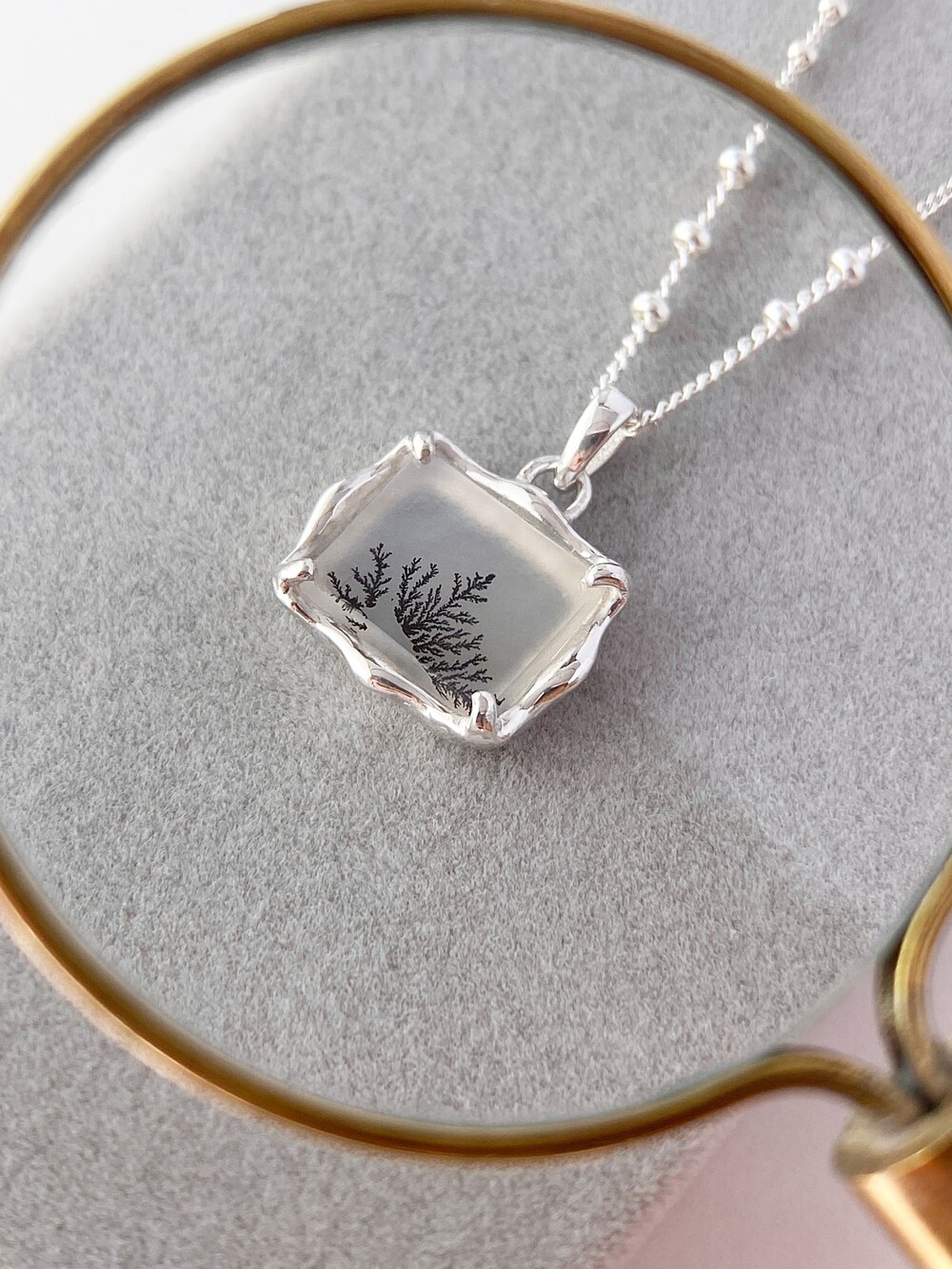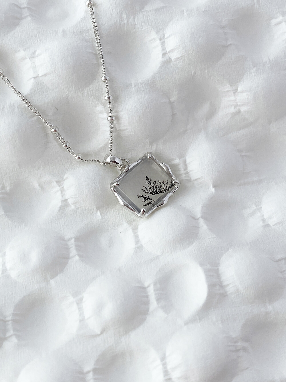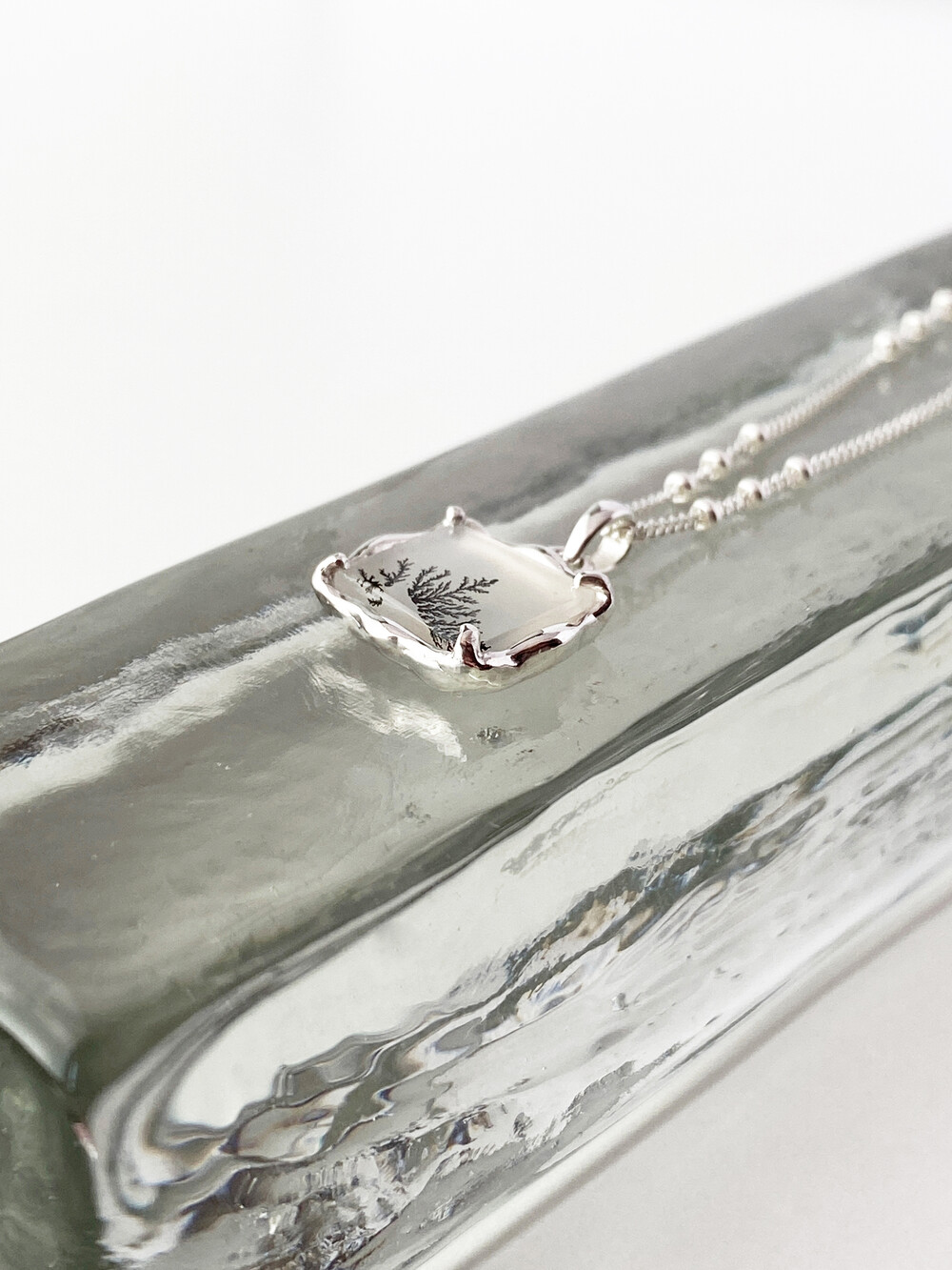 안개 낀 설원 혹은 깊은 겨울의 숲을 연상시키는 덴드릭 아게이트입니다.