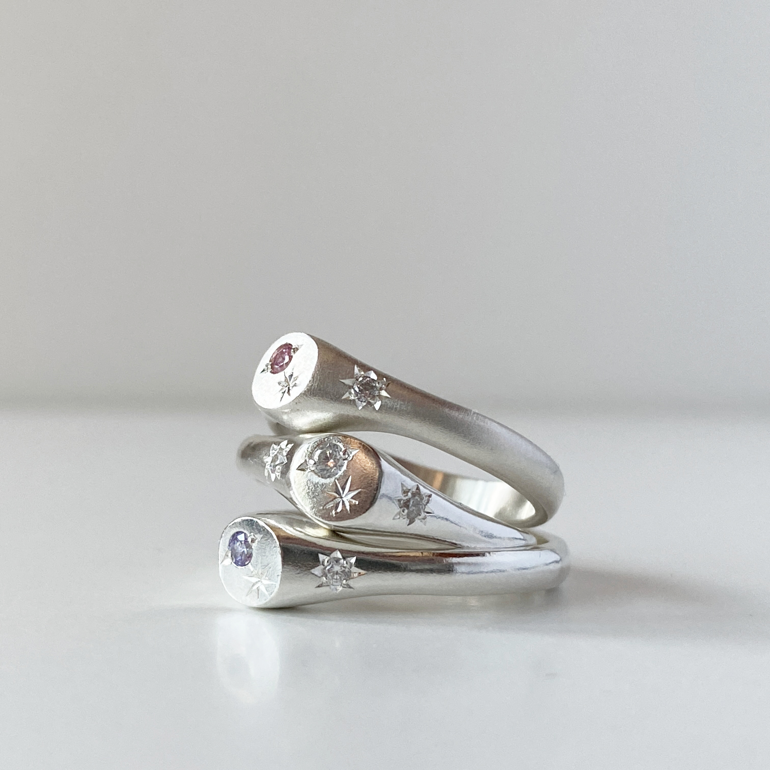 작은 원형안에 나만의 탄생석이 담긴 작고 특별한 행성과 그 주변을 밝혀주는 별 조각이 어우러져 심플하면서도 유니크한 디자인 입니다.