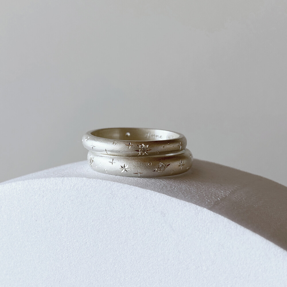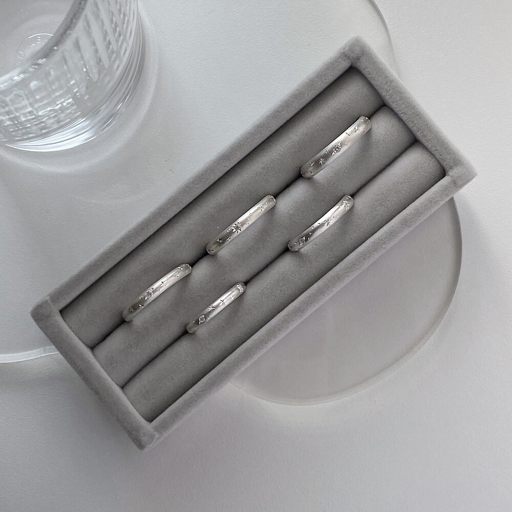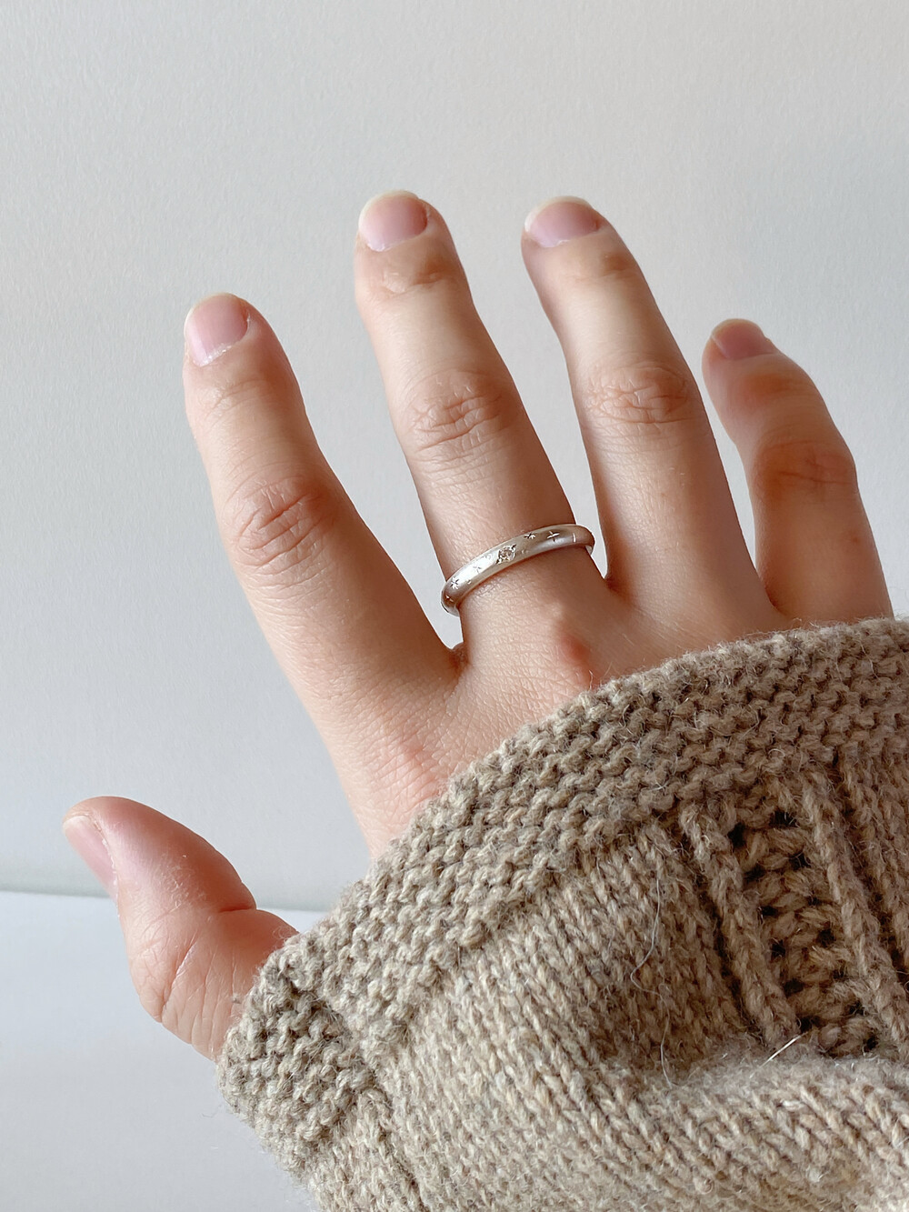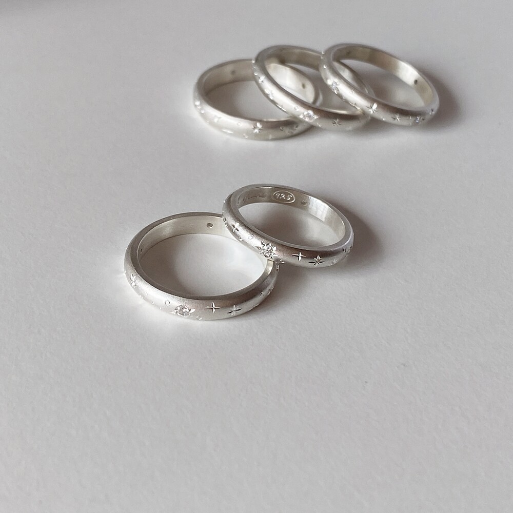 *반짝이는 은하수를 담은 텍스처로 실버 특유의 은은한 빛과 반지 전체를 감싸는 별조각들이 서로 연결되어 마치 하나의 우주를 보는듯 한 디자인입니다.