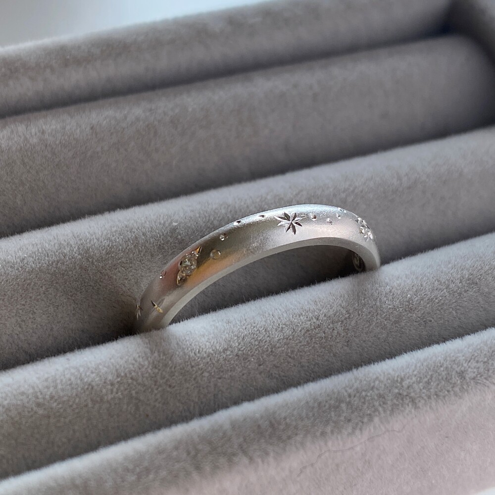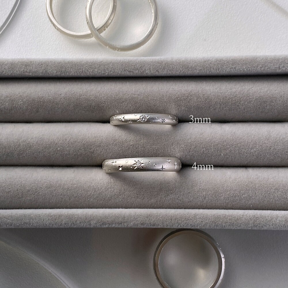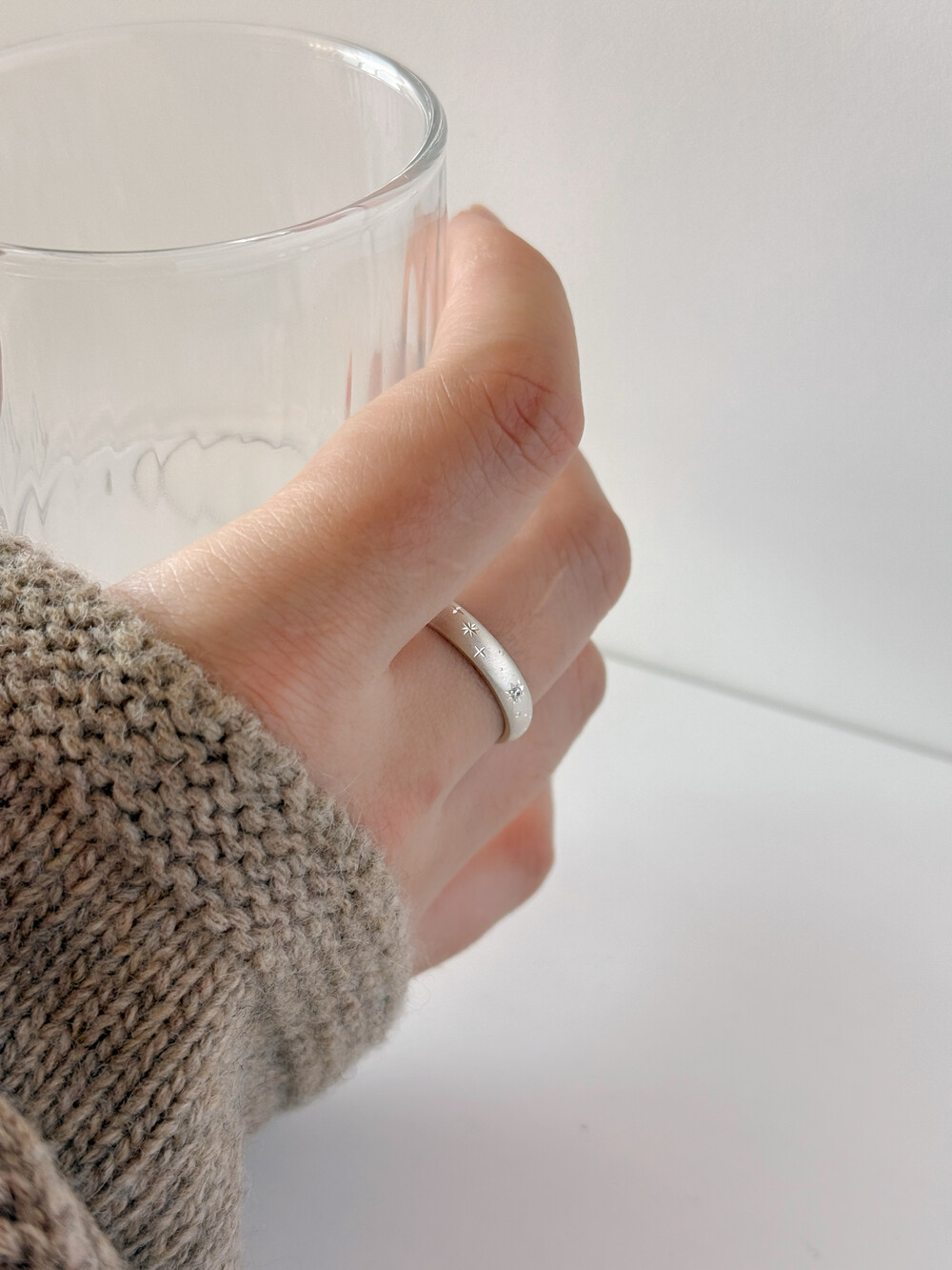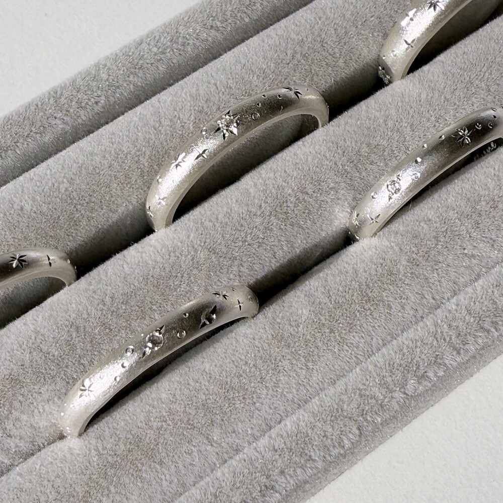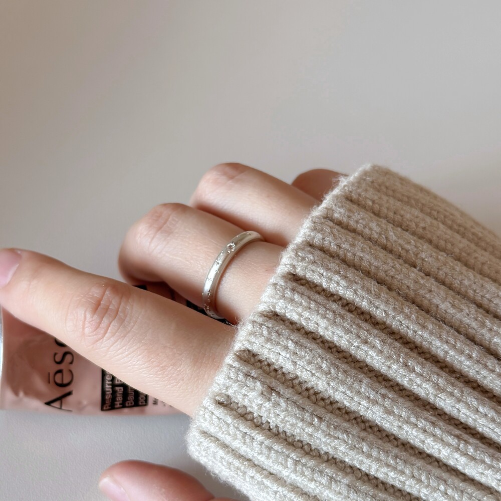 *반짝이는 은하수를 담은 텍스처로 실버 특유의 은은한 빛과 반지 전체를 감싸는 별조각들이 서로 연결되어 마치 하나의 우주를 보는듯 한 디자인입니다.