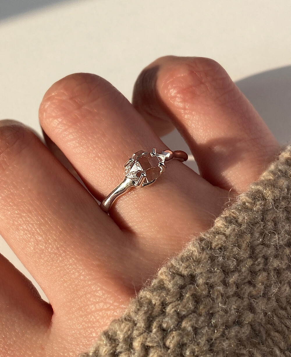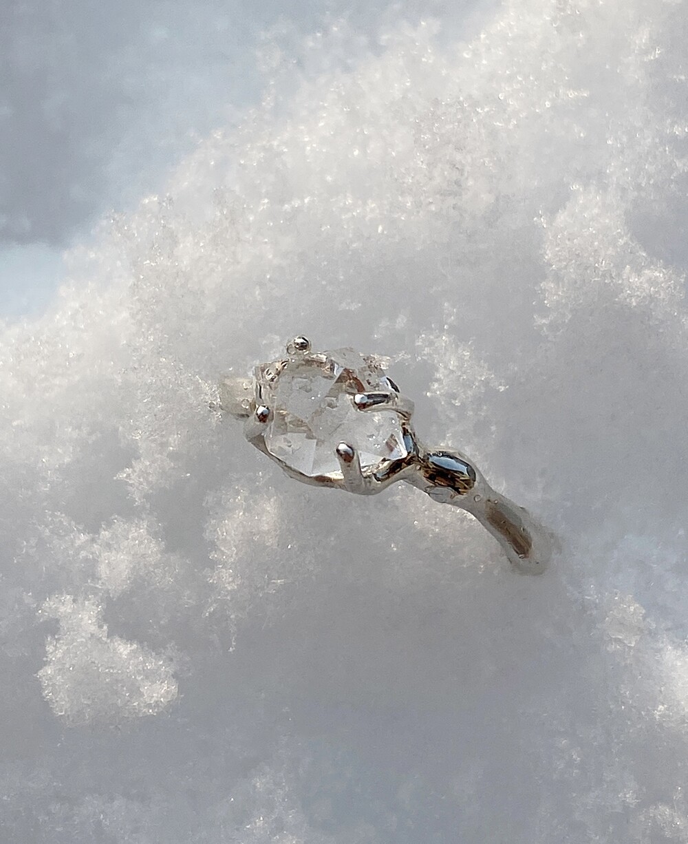 프리미엄급의 하키마 다이아 몬드로 제작한 투명하고 반짝이는 얼음이 녹아내리는 듯한 모습을 표현한 멜팅 실버링입니다.