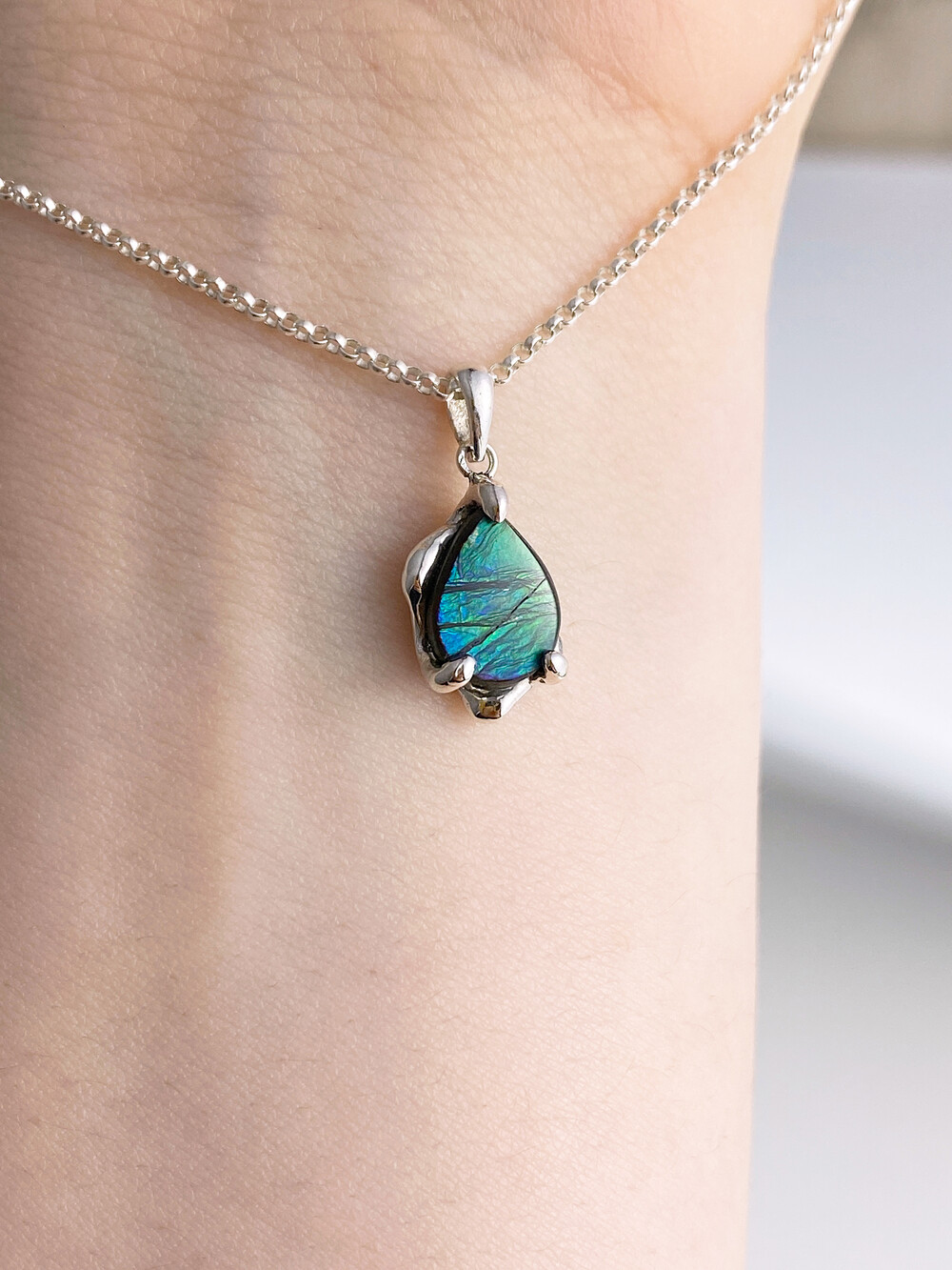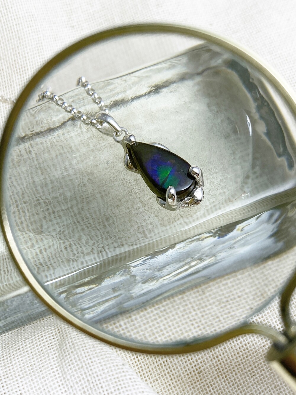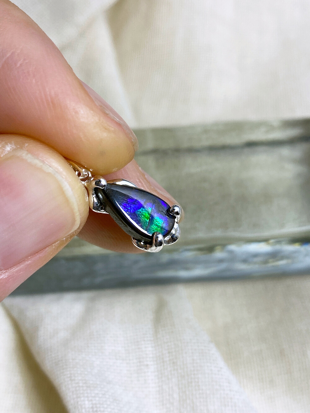 •아몰라이트는 자연 그대로의 결을 가진 섬세한 원석입니다. 표면이 단단하지 않기 때문에 강한 충격이나 날카로운 물체에 닿지 않도록 조심해 주세요.