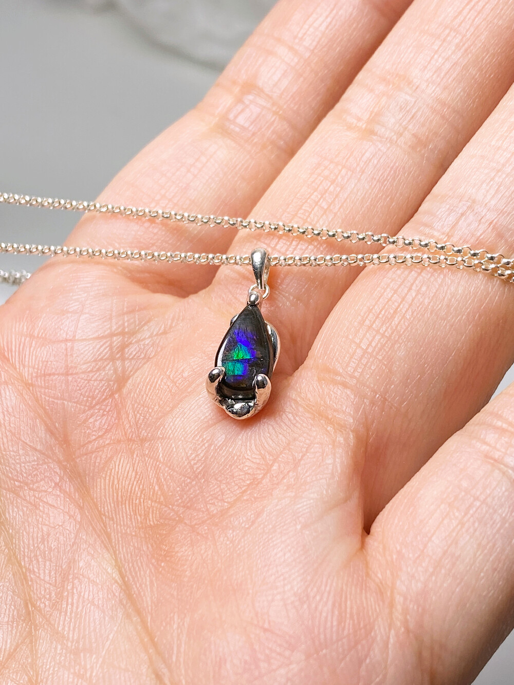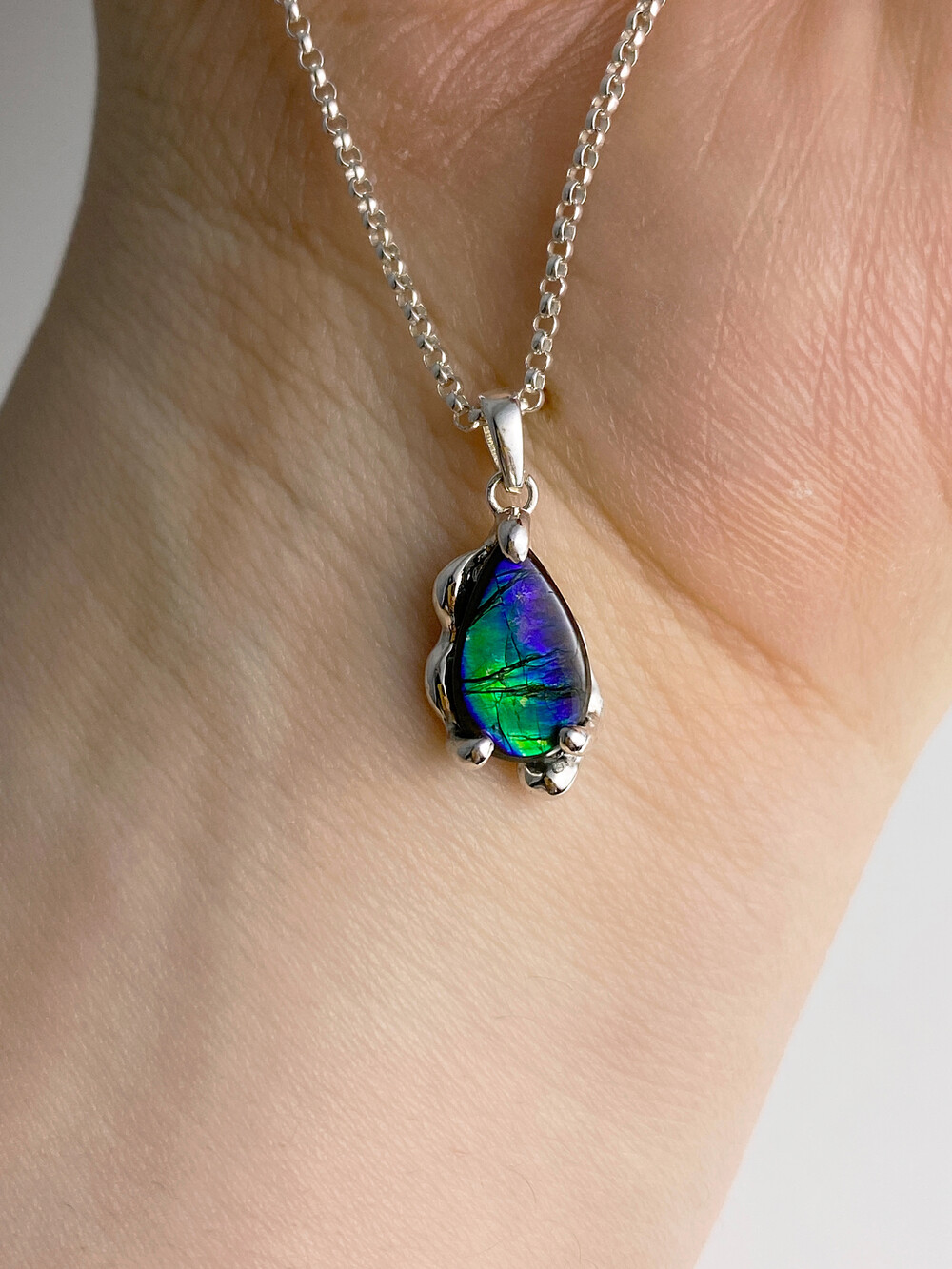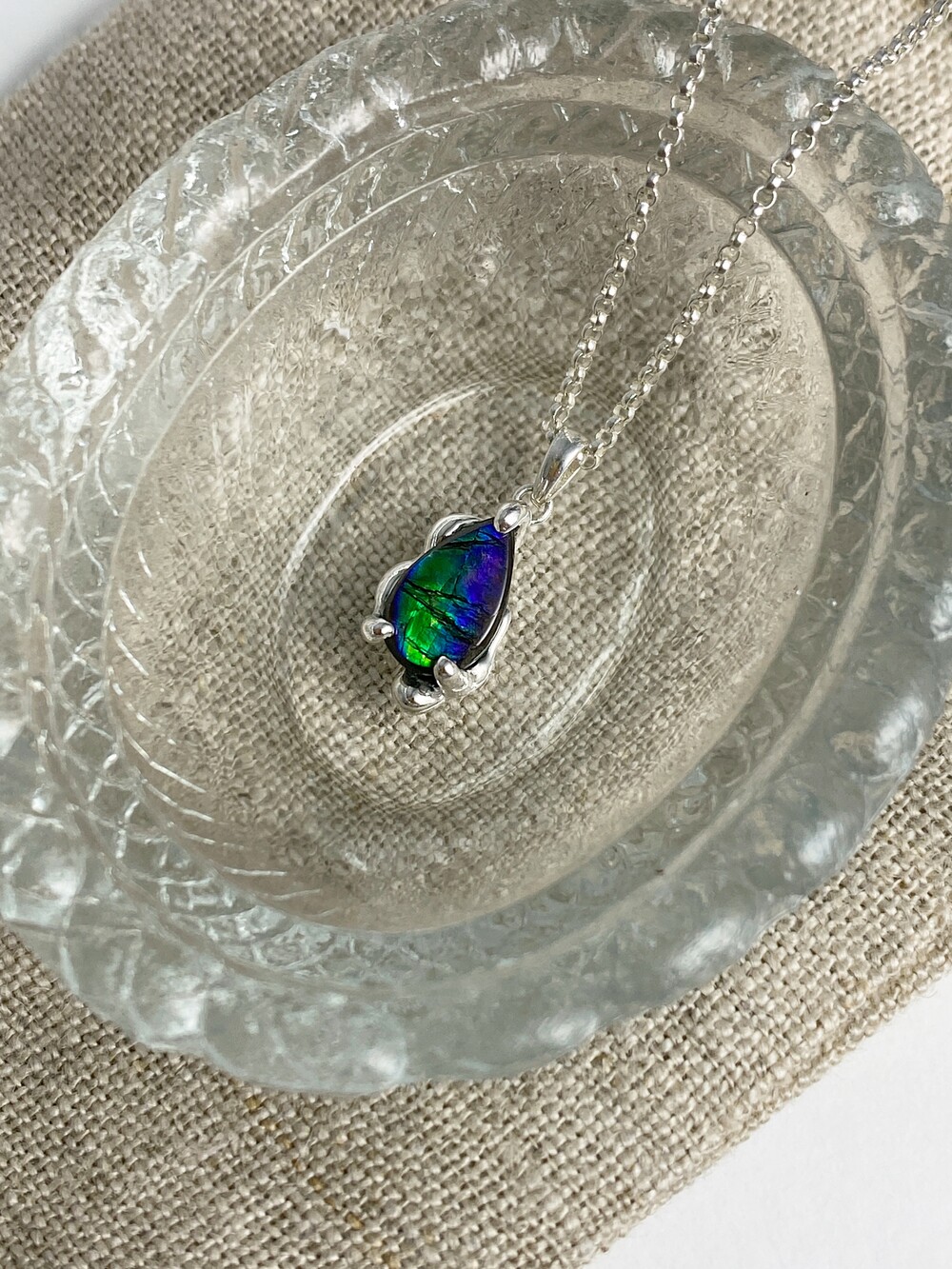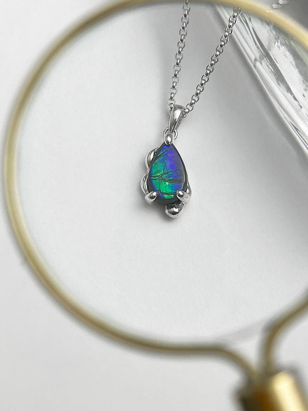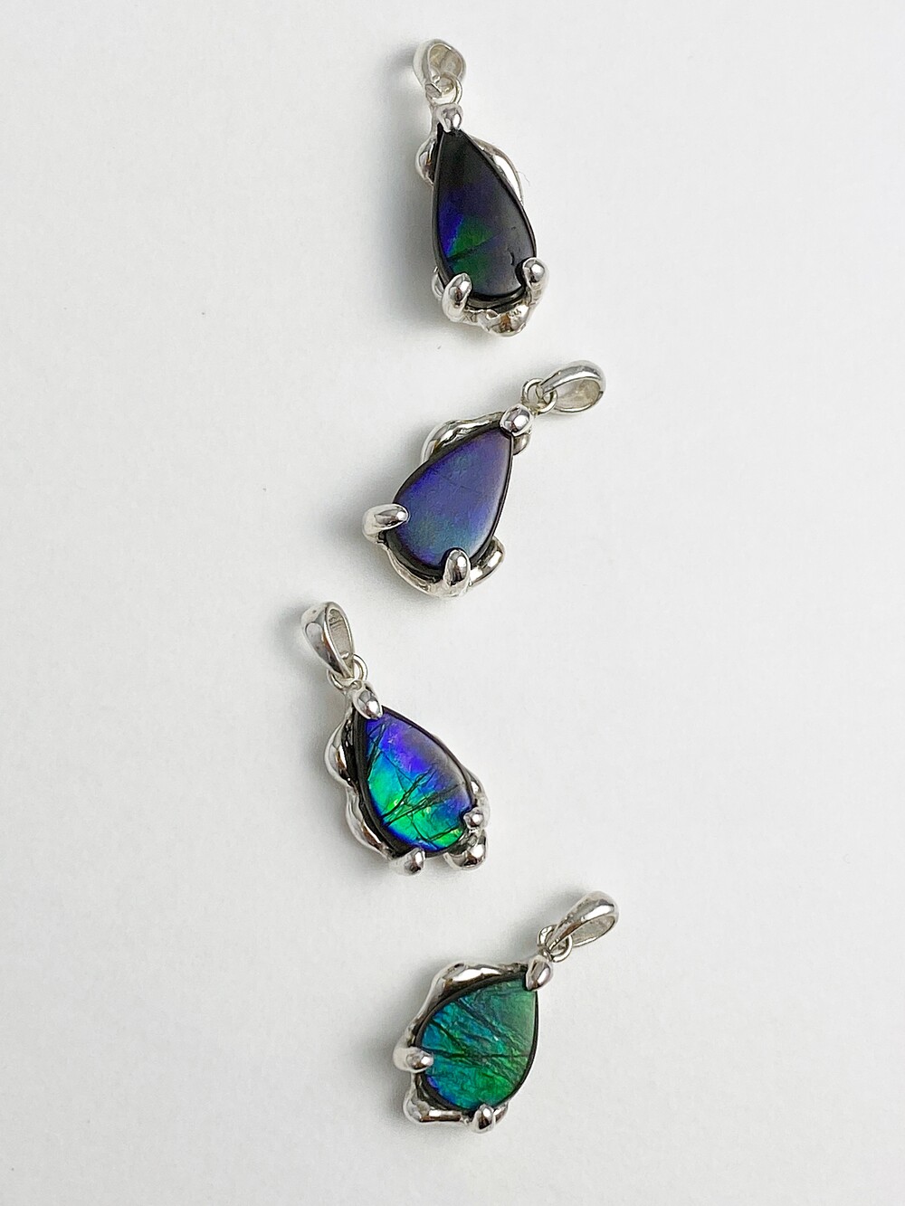 모두 다른 컬러 그리고 오랜 시간이 깃들어 있는 Ammolite를 처음 보았을 때 마치 수면 아래 고요히 떠다니는 우주 같았어요.