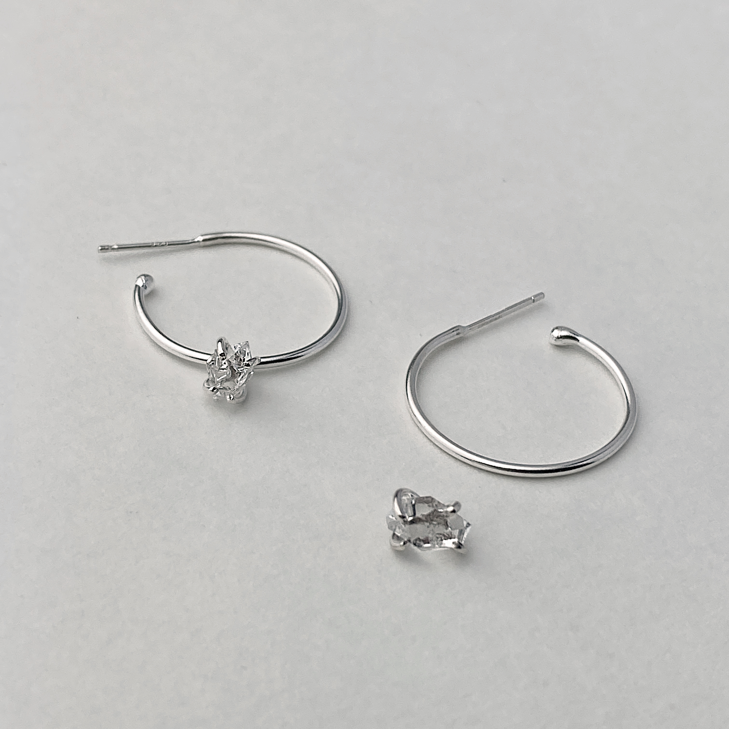 미국 뉴욕 동부의 하키마(Herkimer) 지역에서만 채굴되는 수정으로 다이아몬드처럼 반짝인다고 해서 붙여진 이름이며 쨍한 투명함과 반짝임이 아름다운 천연 원석입니다.