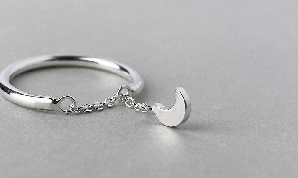 사이즈 조절이 가능한 달 체인 실버링을 소개합니다.