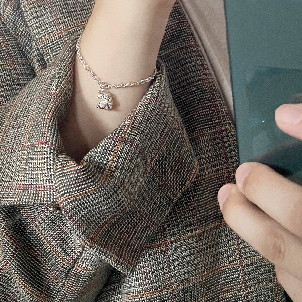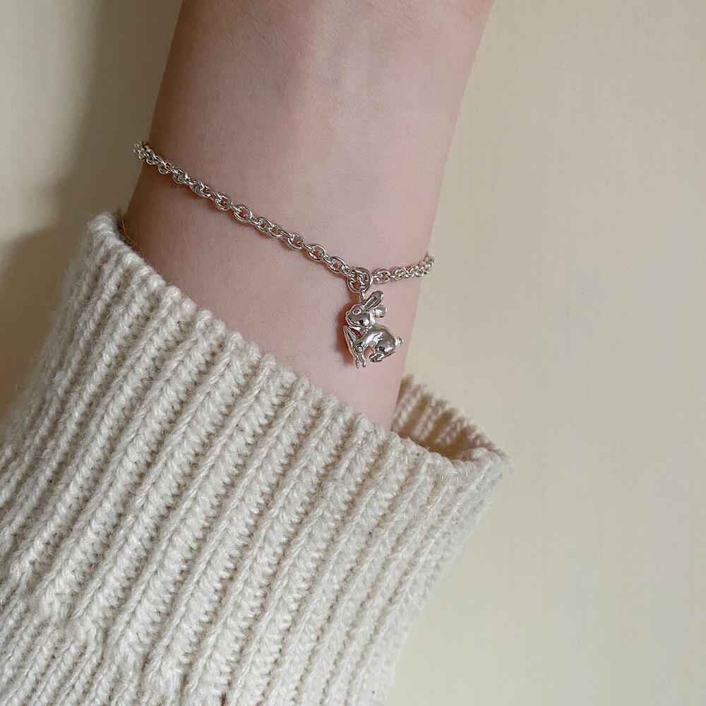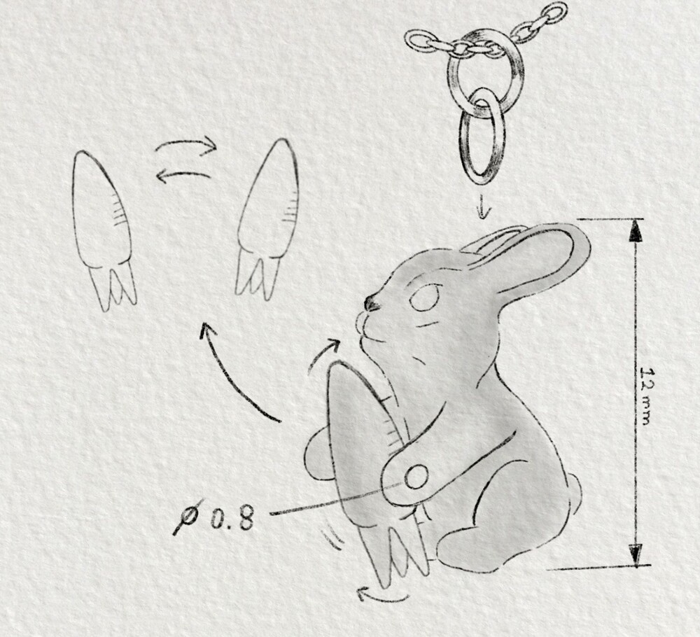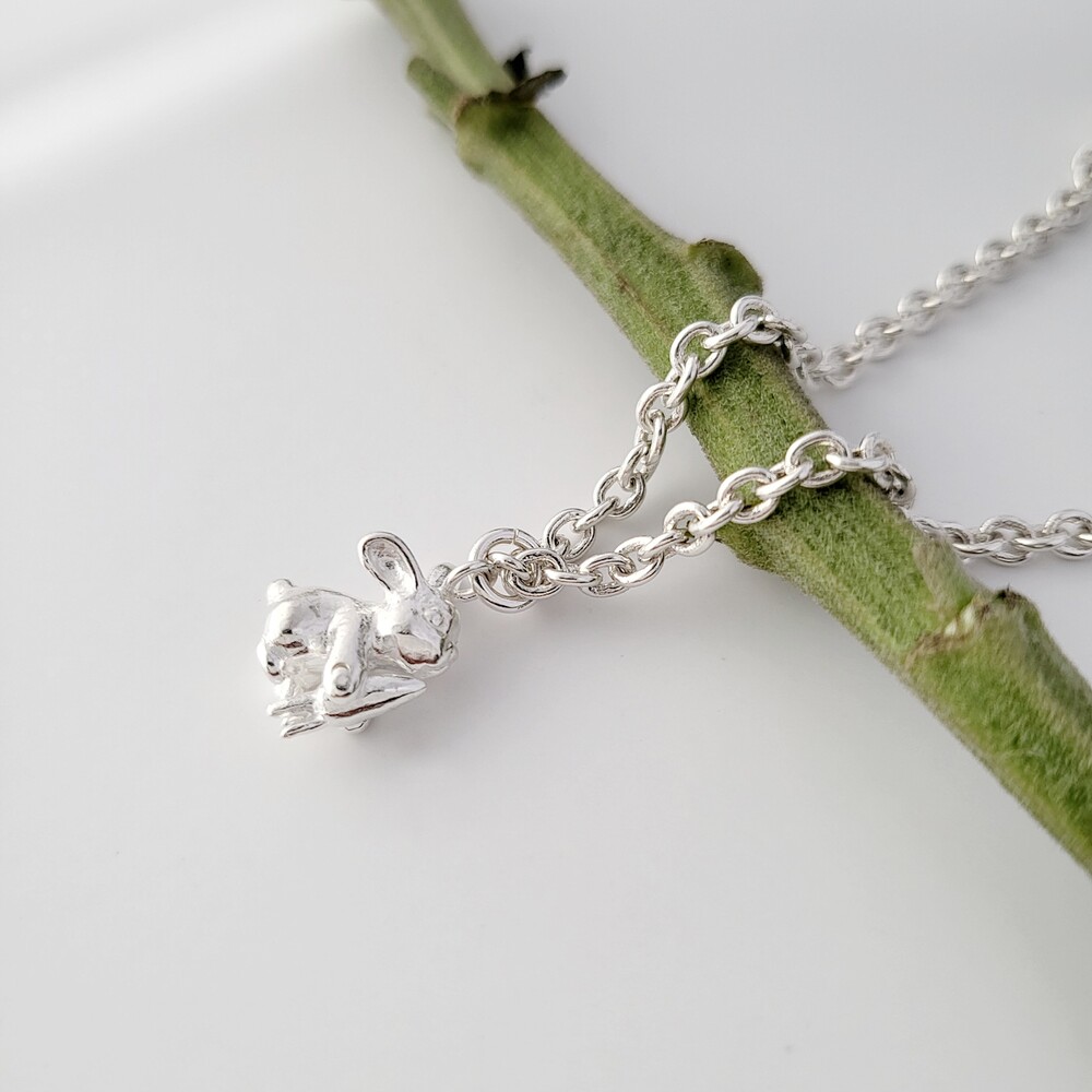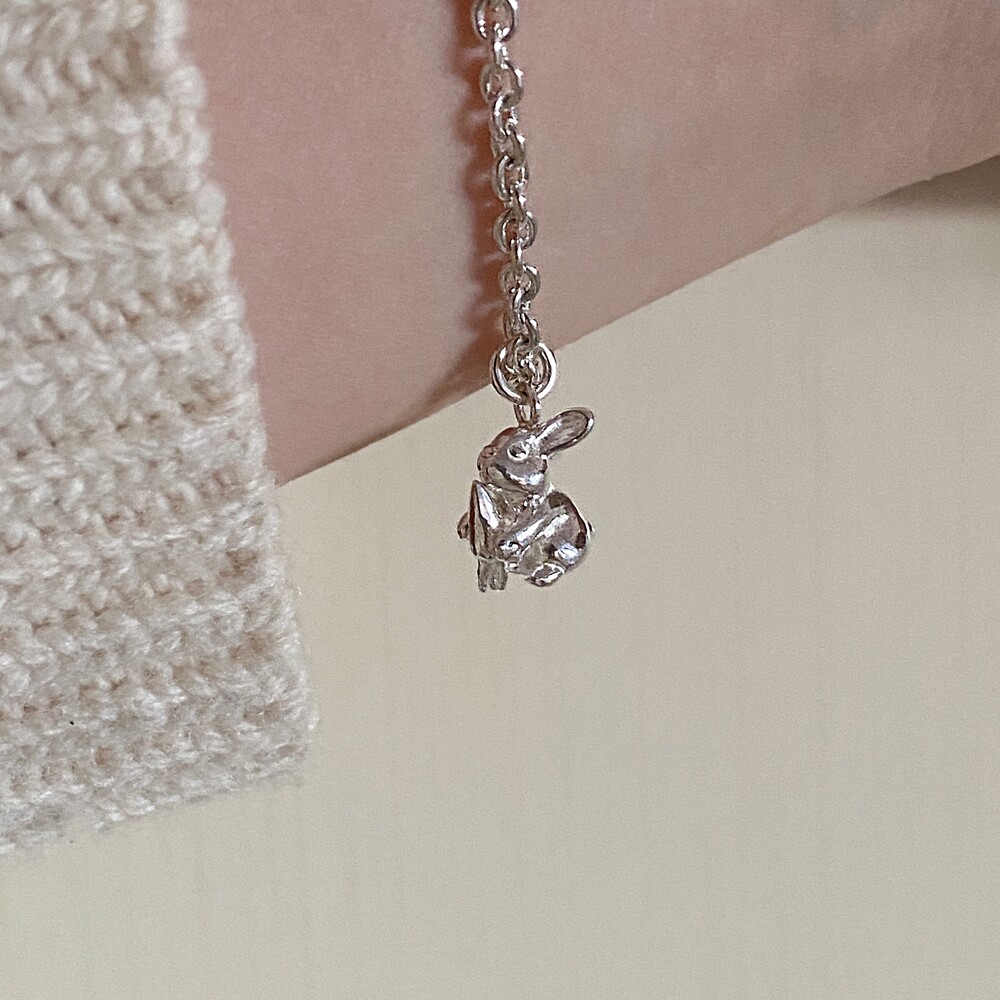 Anytime, Anywhere with oflune's Jewelry - 자신의 몸집만 한 커다란 당근을 먹고 있는 귀여운 토끼 - 오브룬 스튜디오의 시그니처인 애니멀 주얼리 시리즈로 귀여운 토끼가 엄청 커다란 당근을 먹고 있는 듯한 모습을 표현하였으며, 리벳 기법을 사용하여 토끼가 당근을 먹고 있는 움직임을 앙증맞고 고급스럽게 표현하였습니다. - 체인은 두께감이 느껴지는 3mm 폭의 고방 체인을 사용하여 적당한 무게감과, 부드러운 착용감을 느끼실 수 있도록 제작하였습니다. - Measurement (mm) - 토끼 : 10W * 12L - 체인 길이 : 15cm / 16cm / 17cm (옵션 선택) Material : Silver 925