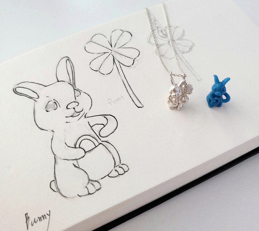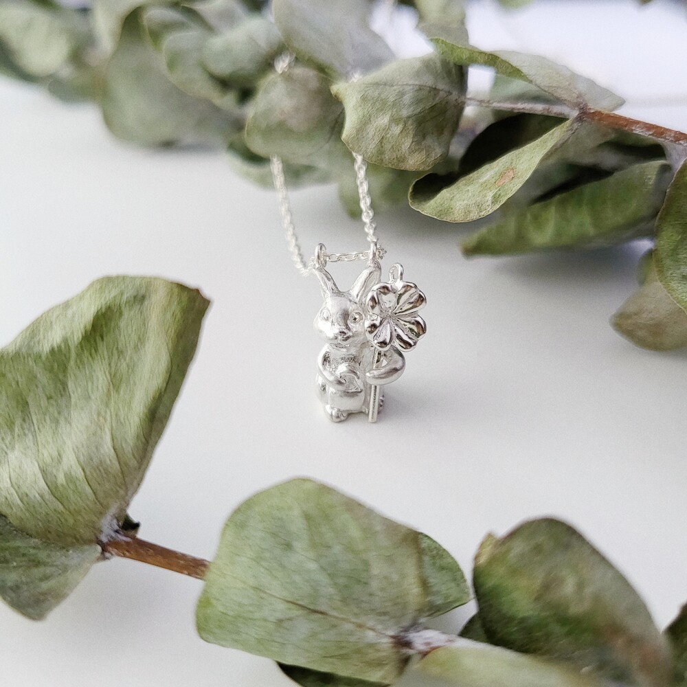 토끼와 클로버를 체인으로 연결하여 클로버를 토끼 팔에 끼웠을 때 자연스럽게 하나가 될 수 있게 제작되었습니다.